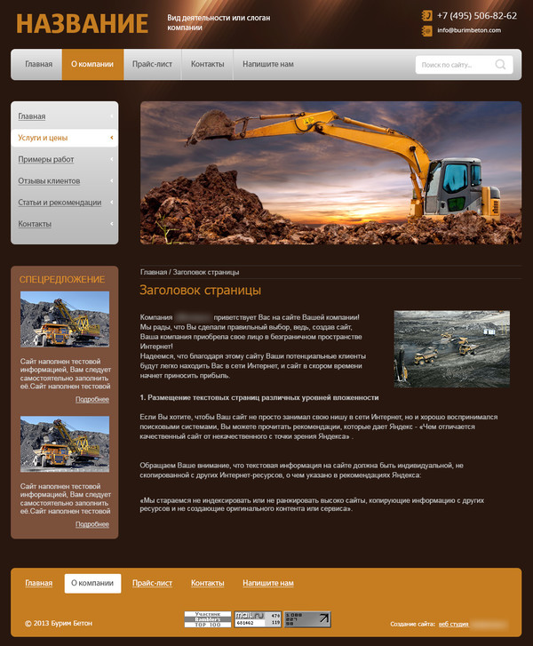 Шаблон (№29832) для сайта тематики "Спецтехника, запчасти". Номер шаблона 29832. Обратитесь за подробностями к нашим специалистам.