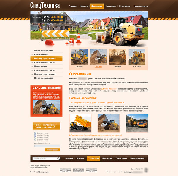Шаблон (№32542) для сайта тематики "Спецтехника, запчасти". Номер шаблона 32542. Обратитесь за подробностями к нашим специалистам.