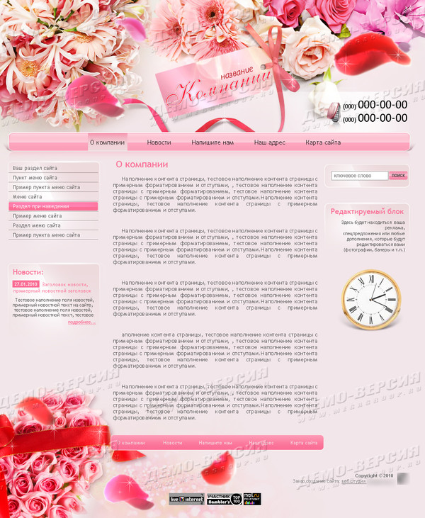 Демо сайт Сайт создаётся на русском языке, дизайн сайта изменяться по желанию заказчика (заменяются изображения и редактируются стили элементов).