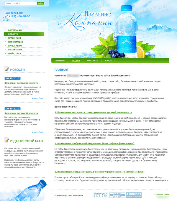 Шаблон (№41) для сайта тематики "Безалкогольные напитки". Номер шаблона 41. Обратитесь за подробностями к нашим специалистам.