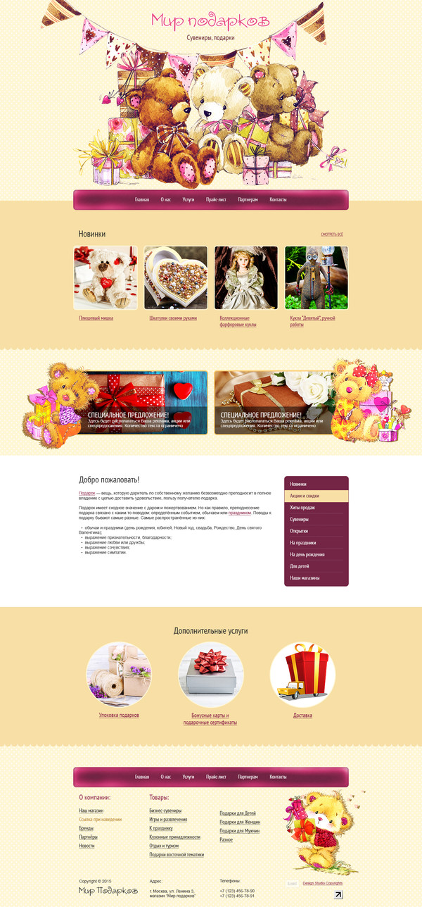Шаблон (№50041) для сайта тематики "Сувениры, подарки". Номер шаблона 50041. Обратитесь за подробностями к нашим специалистам.