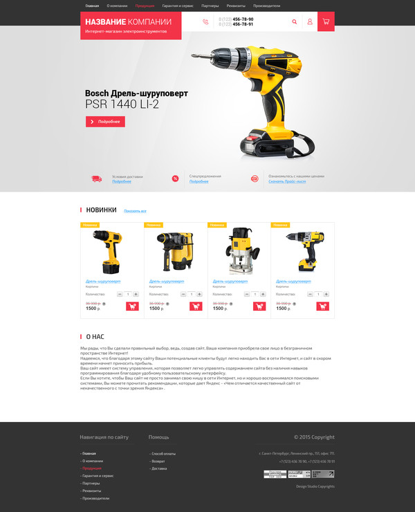 Шаблон (№50079) для сайта тематики "Электроинструменты, оборудование". Номер шаблона 50079. Обратитесь за подробностями к нашим специалистам.