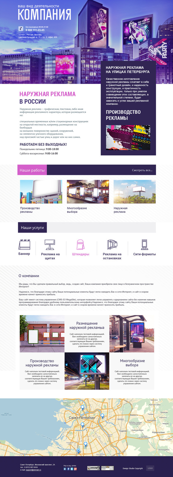 Шаблон (№51674) для сайта тематики "Наружная реклама". Номер шаблона 51674. Обратитесь за подробностями к нашим специалистам.
