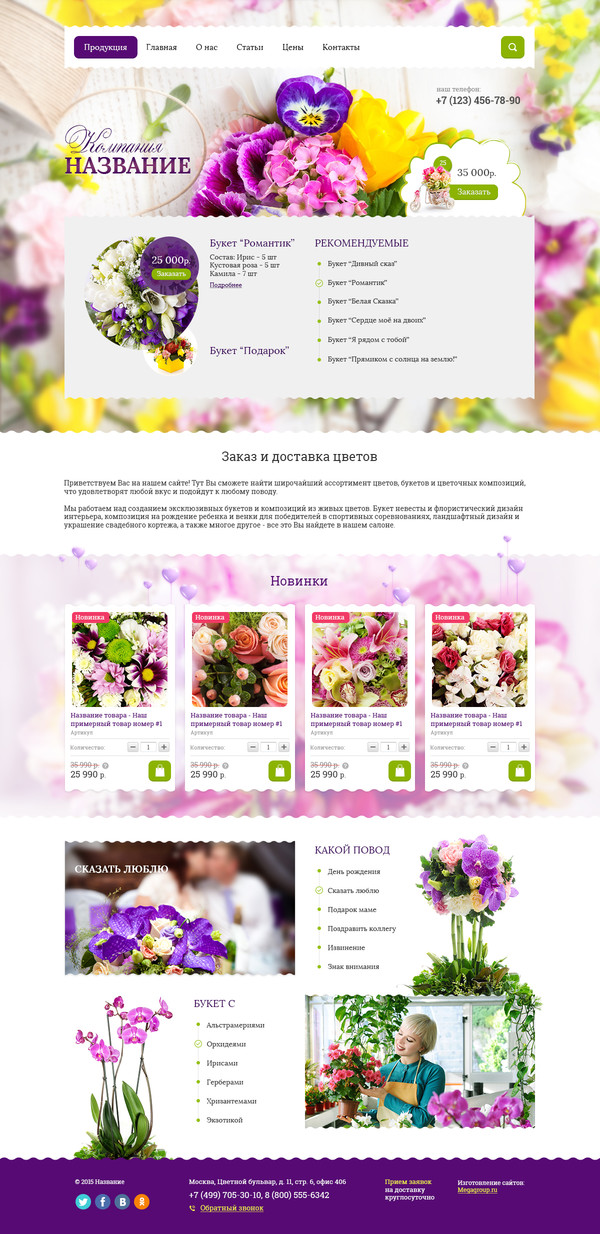Шаблон (№52154) для сайта тематики "Цветы, растения, доставка цветов". Номер шаблона 52154. Обратитесь за подробностями к нашим специалистам.