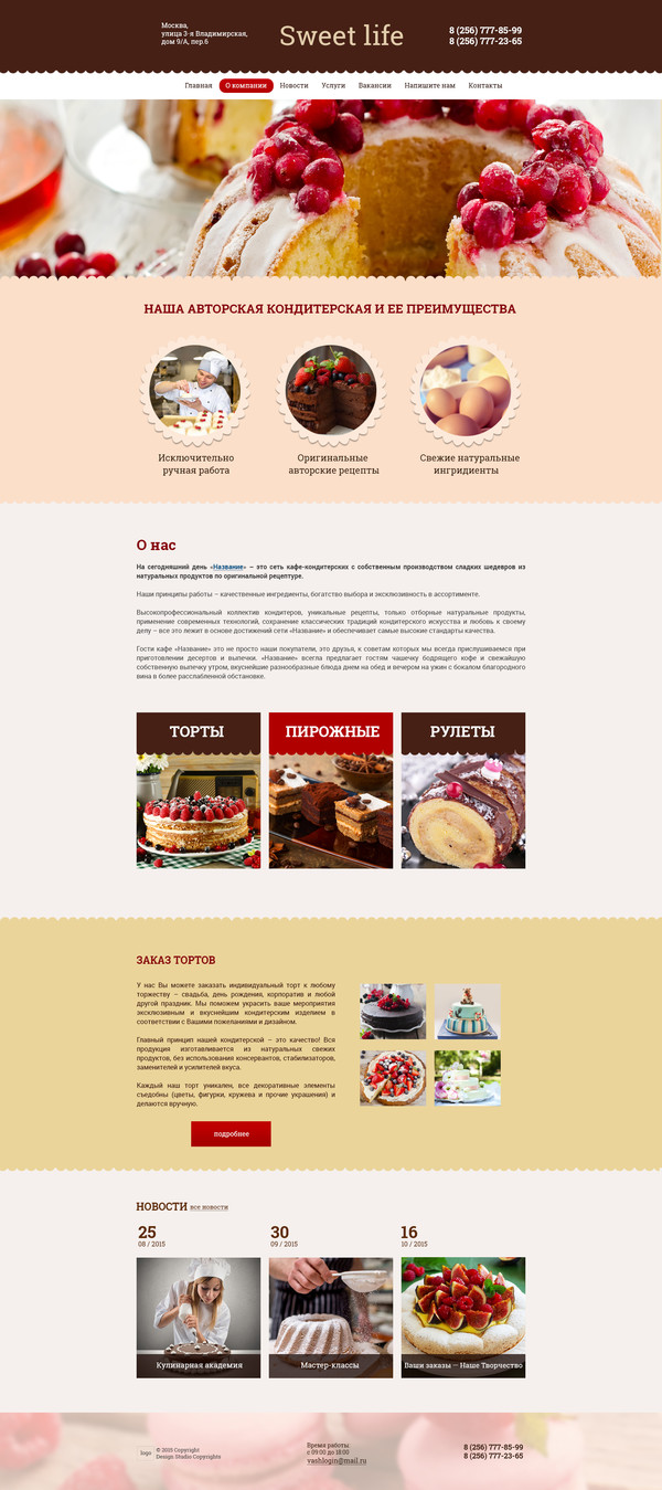Шаблон (№52352) для сайта тематики "Кондитерские, кофейни". Номер шаблона 52352. Обратитесь за подробностями к нашим специалистам.