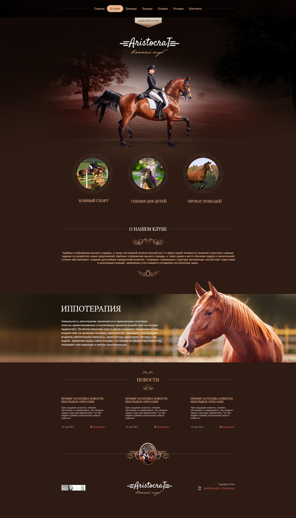 Шаблон (№52493) для сайта тематики "Конный клуб, ипподром". Номер шаблона 52493. Обратитесь за подробностями к нашим специалистам.