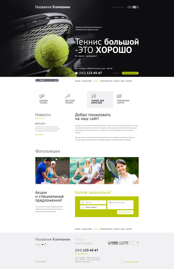Шаблон (№52554) для сайта тематики "Теннисный клуб, корт". Номер шаблона 52554. Обратитесь за подробностями к нашим специалистам.