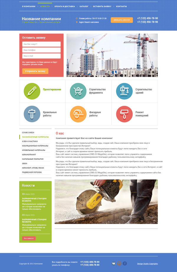 Демо сайт Сайт создаётся на русском языке, дизайн сайта изменяться по желанию заказчика (заменяются изображения и редактируются стили элементов).