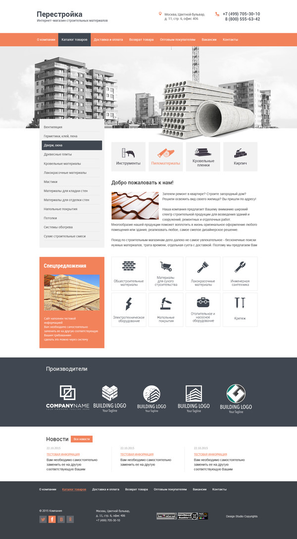 Шаблон (№53145) для сайта тематики "Строительные материалы, инструменты". Номер шаблона 53145. Обратитесь за подробностями к нашим специалистам.