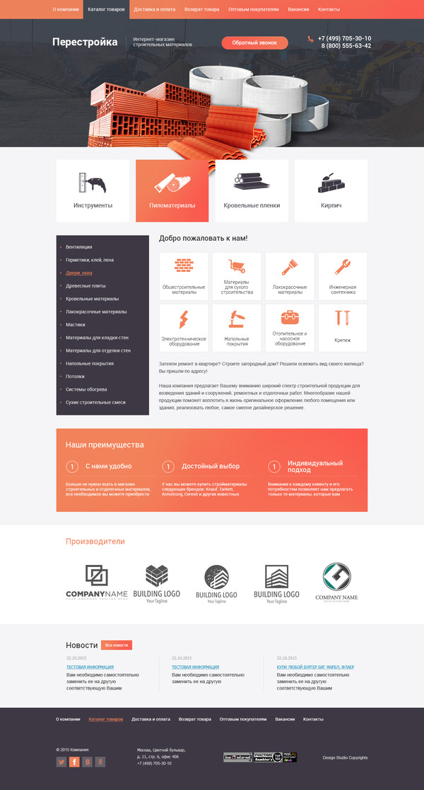 Шаблон (№53147) для сайта тематики "Строительные материалы, инструменты". Номер шаблона 53147. Обратитесь за подробностями к нашим специалистам.