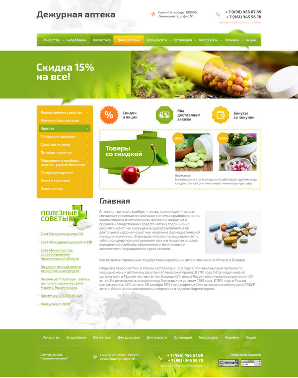 Шаблон (№53227) для сайта тематики "Аптеки". Номер шаблона 53227. Обратитесь за подробностями к нашим специалистам.