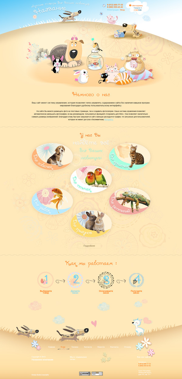 Сайт создаётся на русском языке, дизайн сайта изменяться по желанию заказчика (заменяются изображения и редактируются стили элементов).
