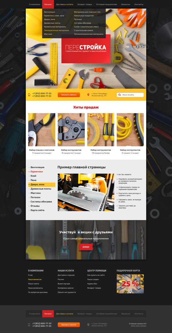 Шаблон (№54001) для сайта тематики "Строительные материалы, инструменты". Номер шаблона 54001. Обратитесь за подробностями к нашим специалистам.