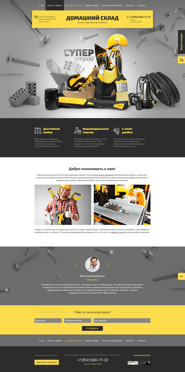 Шаблон (№54188) для сайта тематики "Строительные материалы, инструменты". Номер шаблона 54188. Обратитесь за подробностями к нашим специалистам.