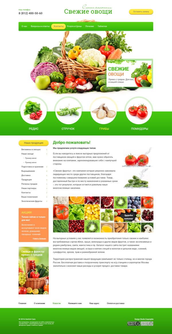 Шаблон (№54266) для сайта тематики "Овощи, фрукты, орехи, грибы". Номер шаблона 54266. Обратитесь за подробностями к нашим специалистам.