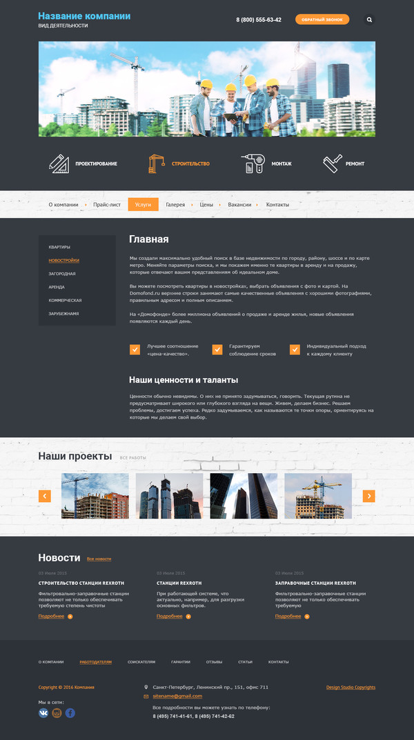 Шаблон (№55502) для сайта тематики "Строительные услуги". Номер шаблона 55502. Обратитесь за подробностями к нашим специалистам.