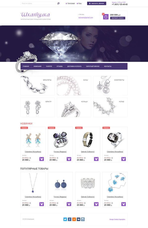 Шаблон (№55903) для сайта тематики "Ювелирные изделия". Номер шаблона 55903. Обратитесь за подробностями к нашим специалистам.