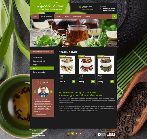 Шаблон (№56037) для сайта тематики "Чай, кофе, какао". Номер шаблона 56037. Обратитесь за подробностями к нашим специалистам.