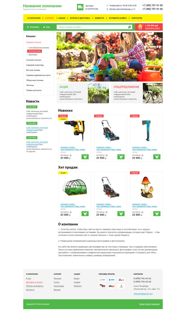 Шаблон (№56087) для сайта тематики "Товары для сада и огорода". Номер шаблона 56087. Обратитесь за подробностями к нашим специалистам.