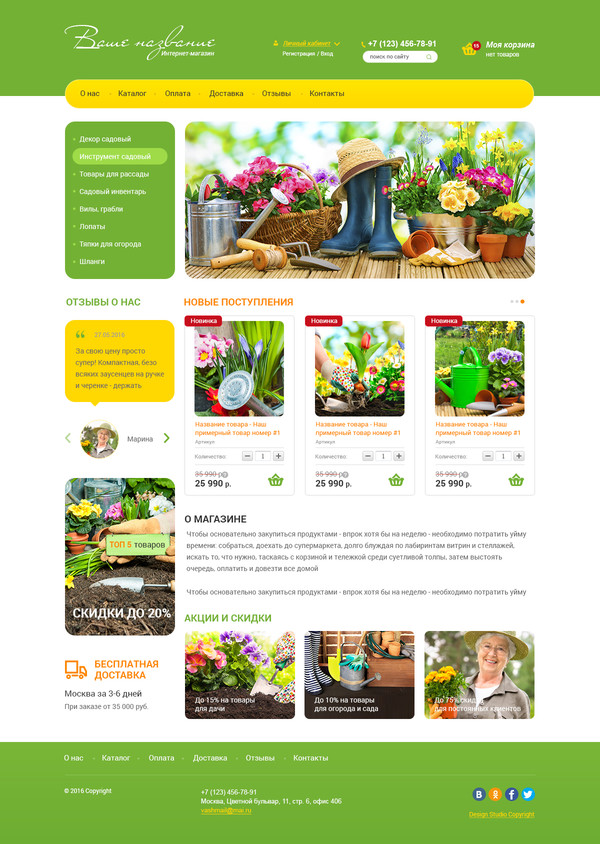 Шаблон (№56393) для сайта тематики "Товары для сада и огорода". Номер шаблона 56393. Обратитесь за подробностями к нашим специалистам.