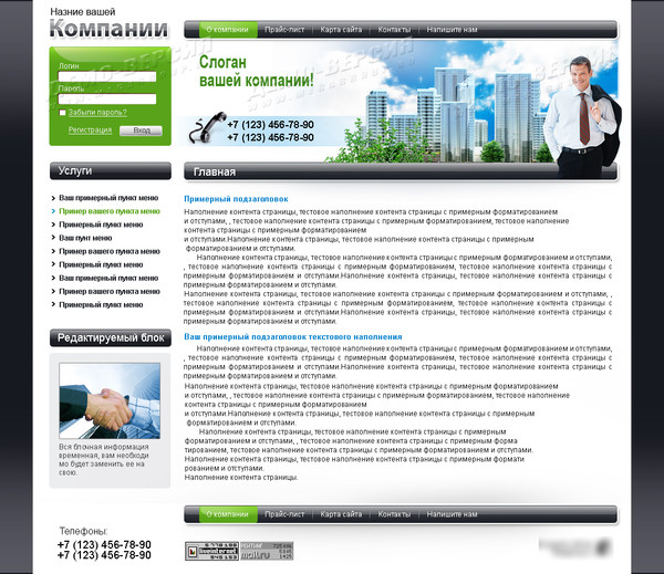 Сайт создаётся на русском языке, дизайн сайта изменяться по желанию заказчика (заменяются изображения и редактируются стили элементов).