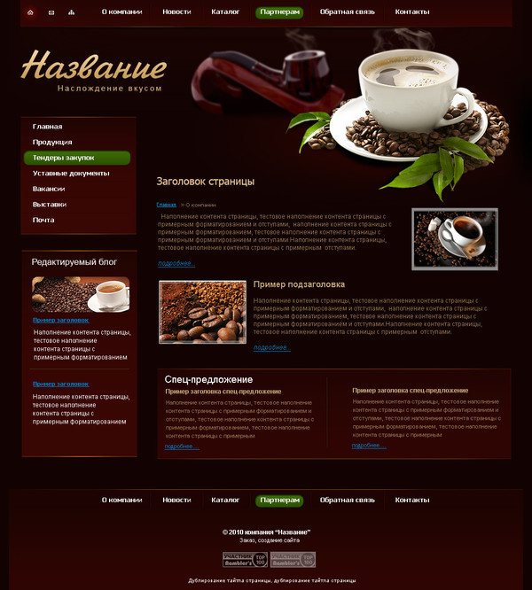 Шаблон (№6570) для сайта тематики "Чай, кофе, какао". Номер шаблона 6570. Обратитесь за подробностями к нашим специалистам.
