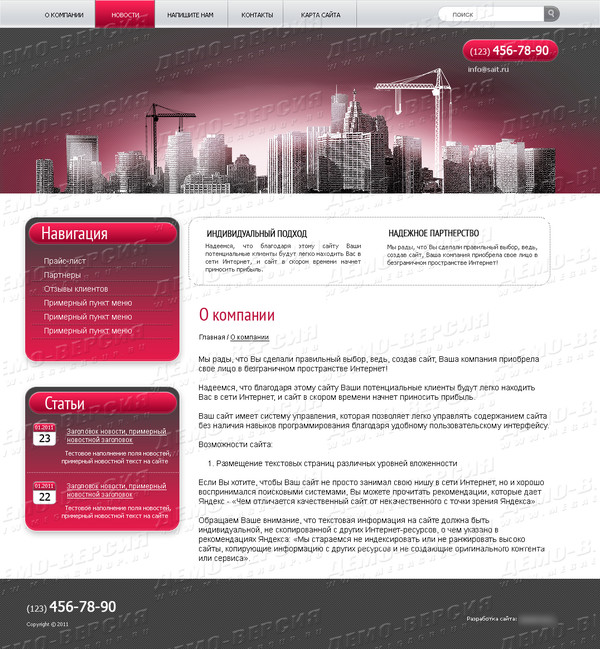 Демо сайт Сайт создаётся на русском языке, дизайн сайта изменяться по желанию заказчика (заменяются изображения и редактируются стили элементов).