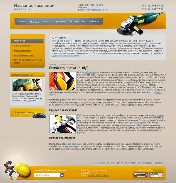 Шаблон (№7190) для сайта тематики "Строительный инструмент и приспособления". Номер шаблона 7190. Обратитесь за подробностями к нашим специалистам.