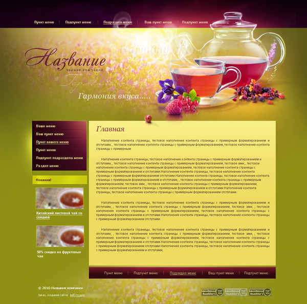 Шаблон (№7501) для сайта тематики "Чай, кофе, какао". Номер шаблона 7501. Обратитесь за подробностями к нашим специалистам.