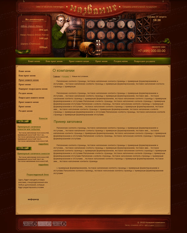Демо сайт Сайт создаётся на русском языке, дизайн сайта изменяться по желанию заказчика (заменяются изображения и редактируются стили элементов).