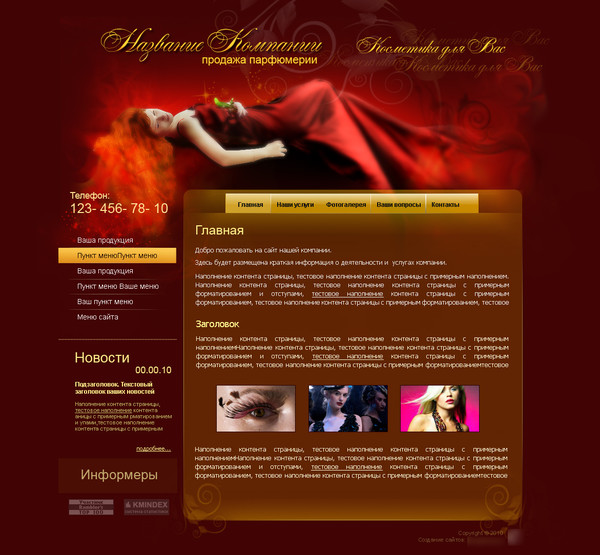 Шаблон (№786) для сайта тематики "Парфюмерия и косметика". Номер шаблона 786. Обратитесь за подробностями к нашим специалистам.