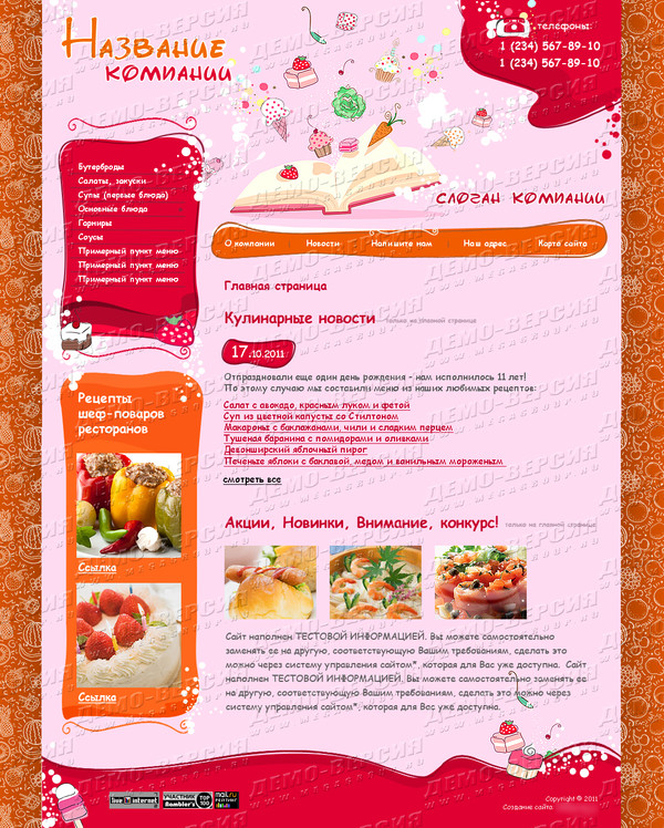 Сайт создаётся на русском языке, дизайн сайта изменяться по желанию заказчика (заменяются изображения и редактируются стили элементов).