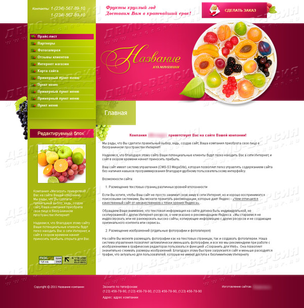 Шаблон (№8622) для сайта тематики "Овощи, фрукты, орехи, грибы". Номер шаблона 8622. Обратитесь за подробностями к нашим специалистам.