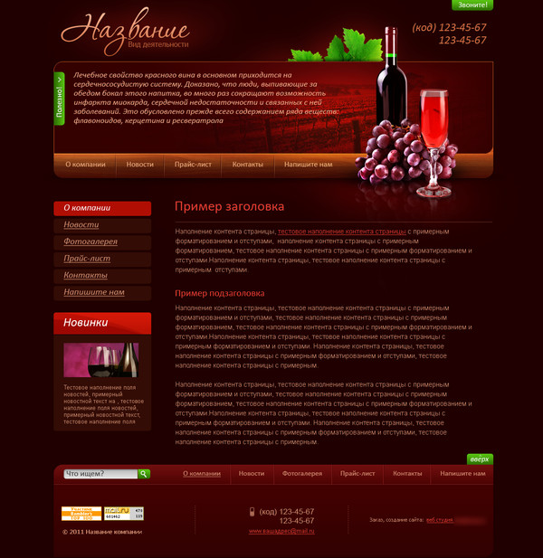 Сайт создаётся на русском языке, дизайн сайта изменяться по желанию заказчика (заменяются изображения и редактируются стили элементов).