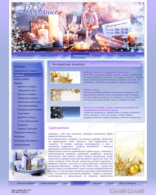 Шаблон (№9314) для сайта тематики "Сувениры, подарки". Номер шаблона 9314. Обратитесь за подробностями к нашим специалистам.
